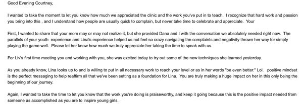 See what a father has to say about the quality of training I provide for his young daughters after attending a clinic!