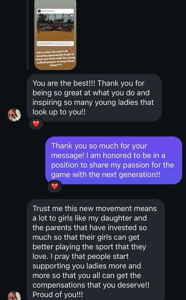 Feedback from a mother I met during my season with the NY Rise! Her daughter is not a pitcher and we met after they came to one of our games!